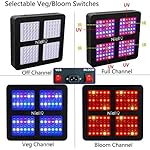 Wählbare Veg / Bloom Schalter, Vollspektrum in zwei Stufen einstellbar je nach der Pflanzenwachstumsstufe, einfach zu bedienen. 2 Schalter 3 Arten (rot / blau / rot und blau), Veg Schalter sind für die Aussaat ausgelegt, Bloom Schalter ist für die Blüte konzipiert.