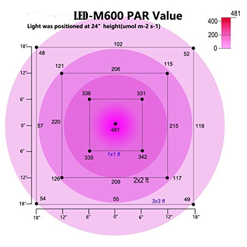 Vergleichbar mit 600 Watt HPS / MH, obwohl nur 240 Watt verbraucht werden. Ideal für eine Wachstumsgröße von 3 ‚x 3′ (91 x 91 cm) bei Aufhängung der LED in einer Höhe von 24 „(61 cm) Maximale Ausleuchtung 4’x 4‘ (121 x 121 cm).